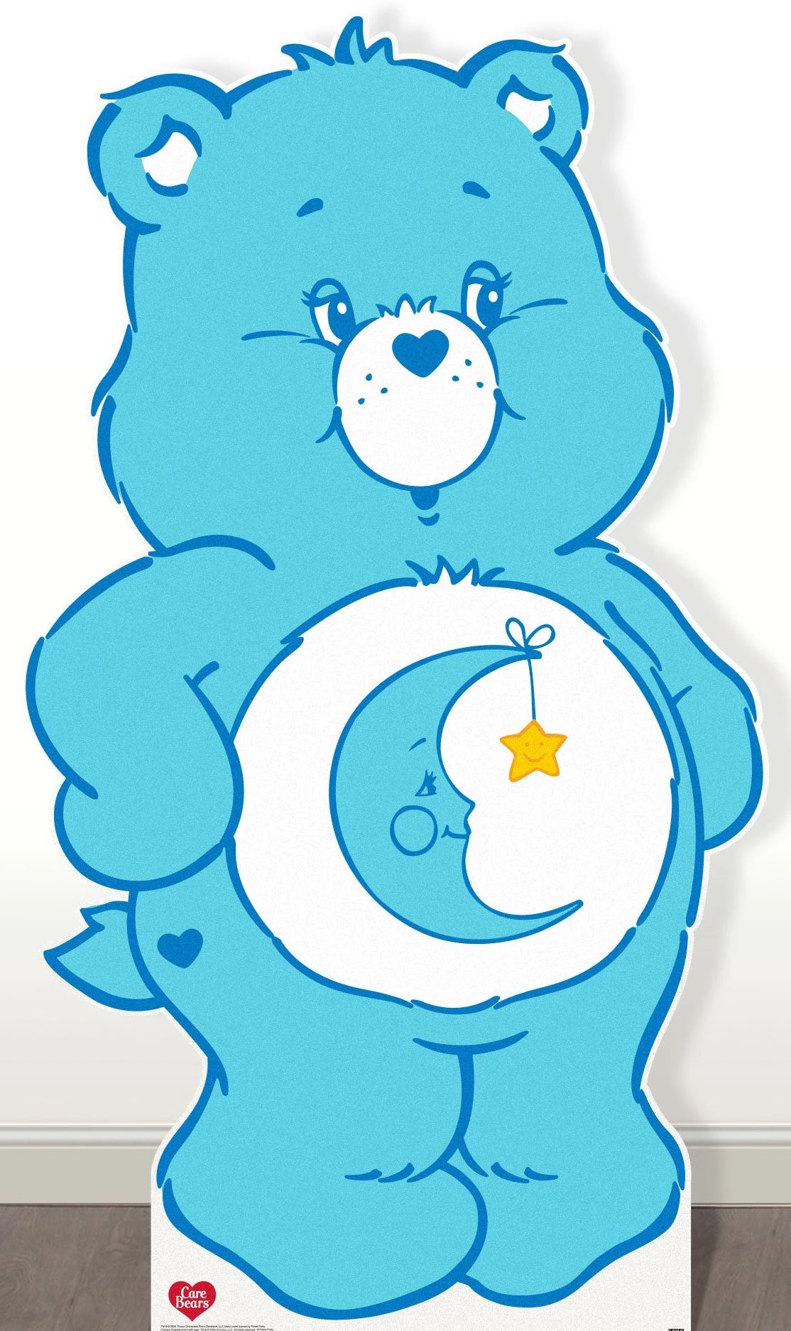 He has aqua blue fur and his Belly badge depicts a light blue crescent moon with a yellow star hanging from its top crest. In Adventures in Care-a-Lot, he wears a yellow and blue nightcap, and also wears slippers in the same series.