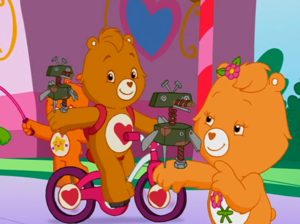 - While exiting Grumpy's garage, Good Luck Bear is incorrectly drawn with eyelashes. [1]