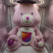 Cheer Bear's belly badge on Wish Bear, with two tush hearts